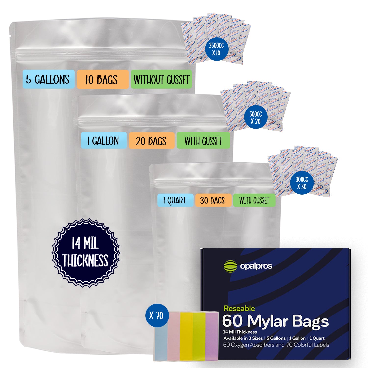 Opalpros 60 pcs 14 Mil mylar bags for food storage